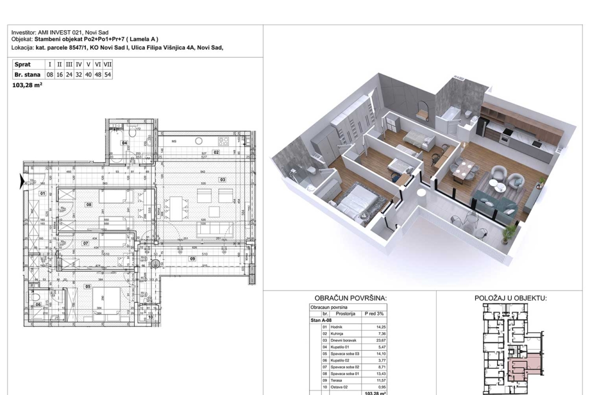 FILIPA VIŠNJIĆA 4 – Stan 24 – Četvorosoban – Lamela A
