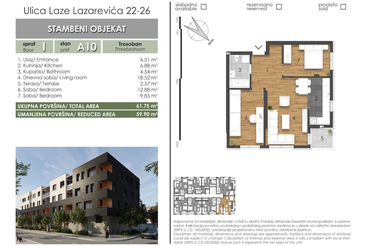 Laze Lazarević 24-26 – Stan A10 – Trosoban – Lamela A