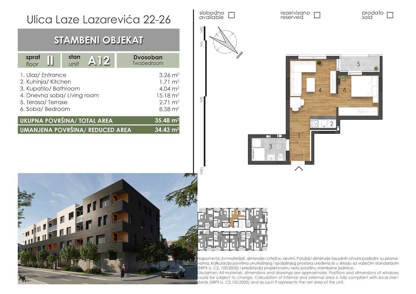Laze Lazarević 24-26 – Stan A12 – Dvosoban – Lamela A