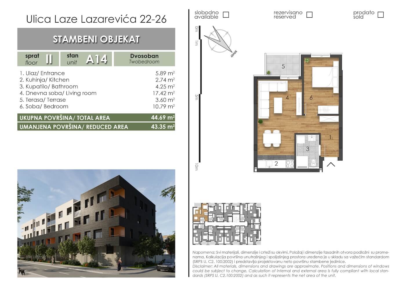 Laze Lazarević 24-26 – Stan A14 – Dvosoban – Lamela A
