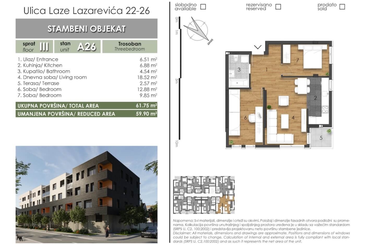 Laze Lazarević 24-26 – Stan A26 – Trosoban – Lamela A
