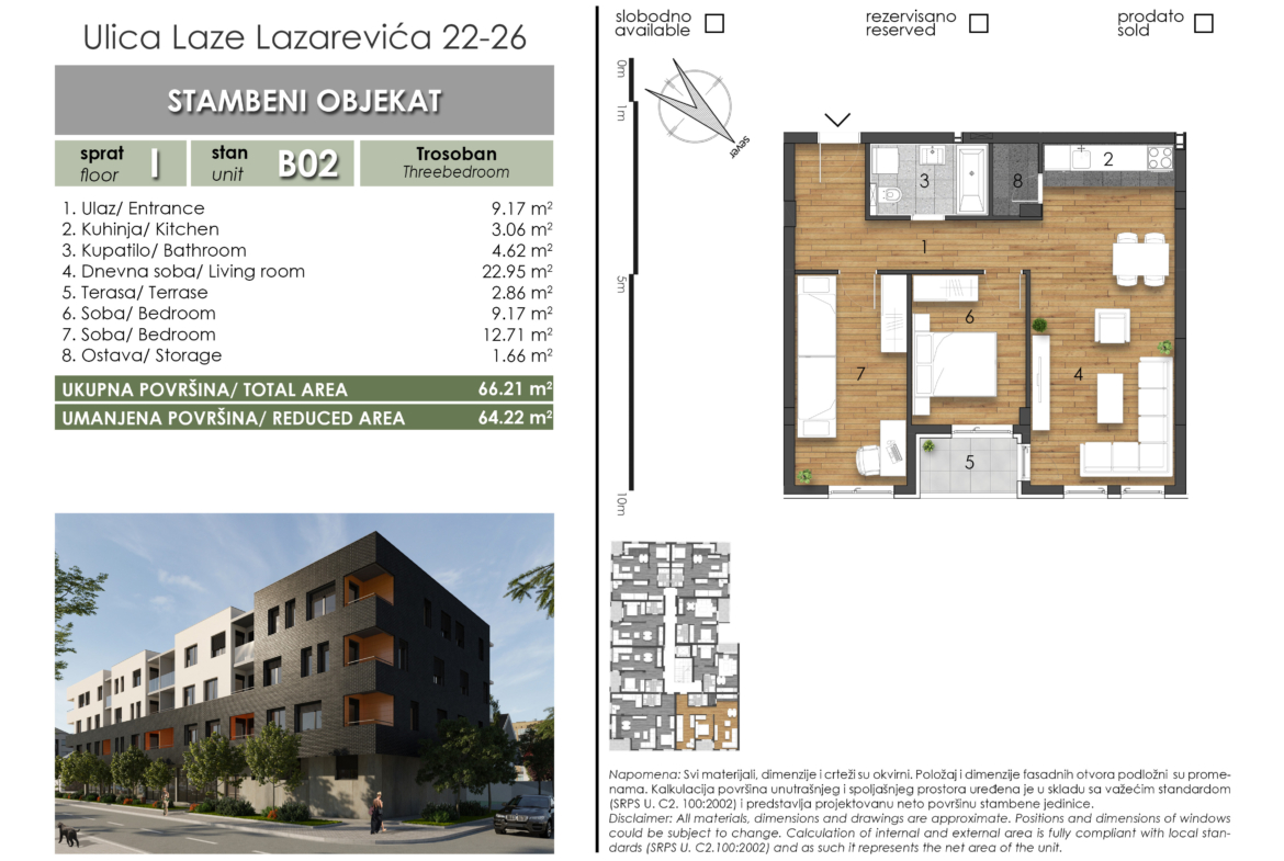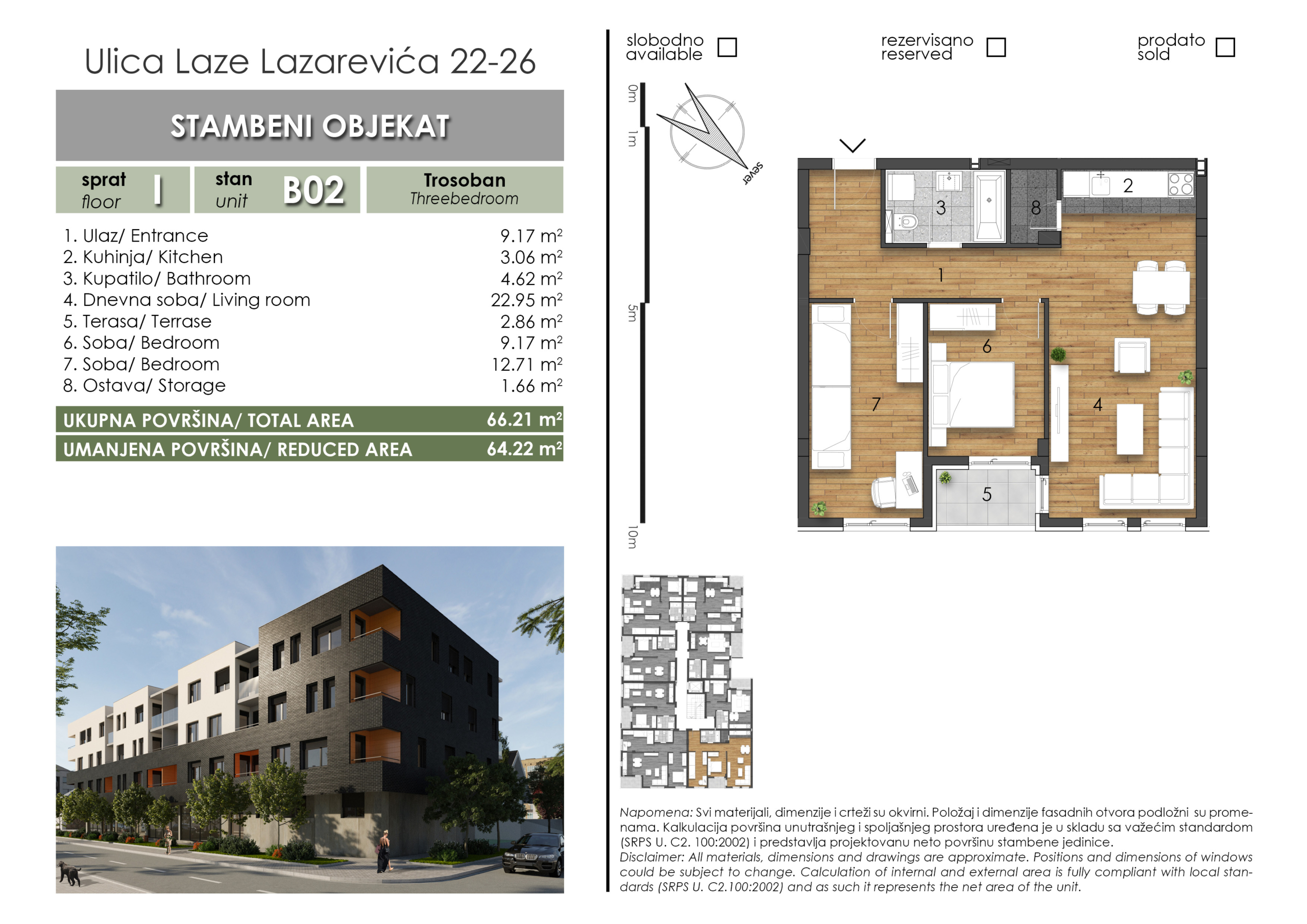 Laze Lazarević 24-26 – Stan B02 – Trosoban – Lamela B