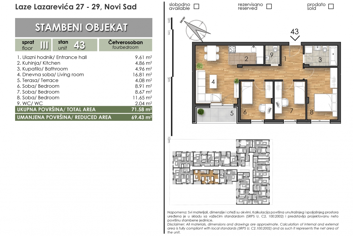 Laze Lazarević 27-29 – stan 43 – Četvorosoban