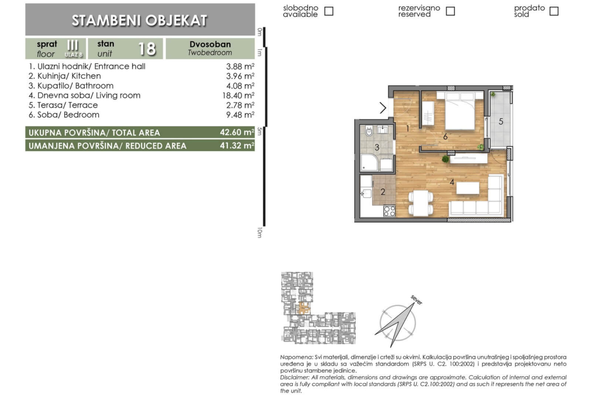 LAZE LAZAREVIĆA – Stan 18 – Dvosoban – Lamela B