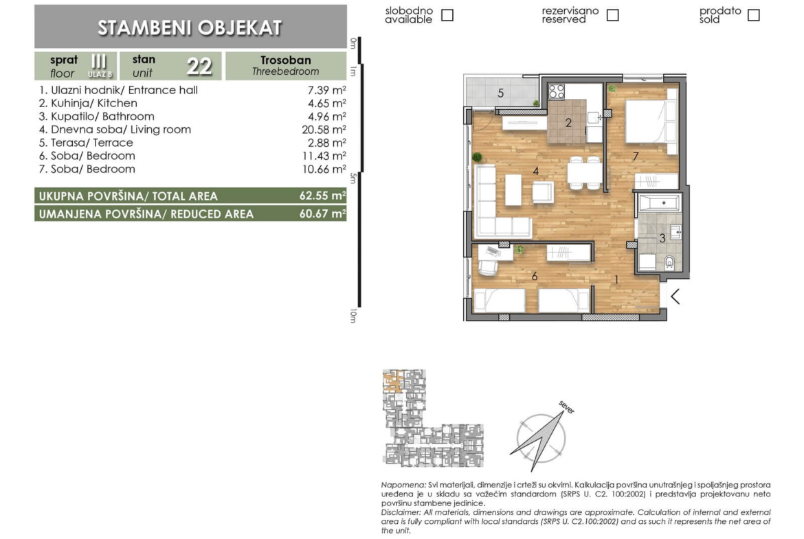 LAZE LAZAREVIĆA – Stan 22 – Trosoban – Lamela B
