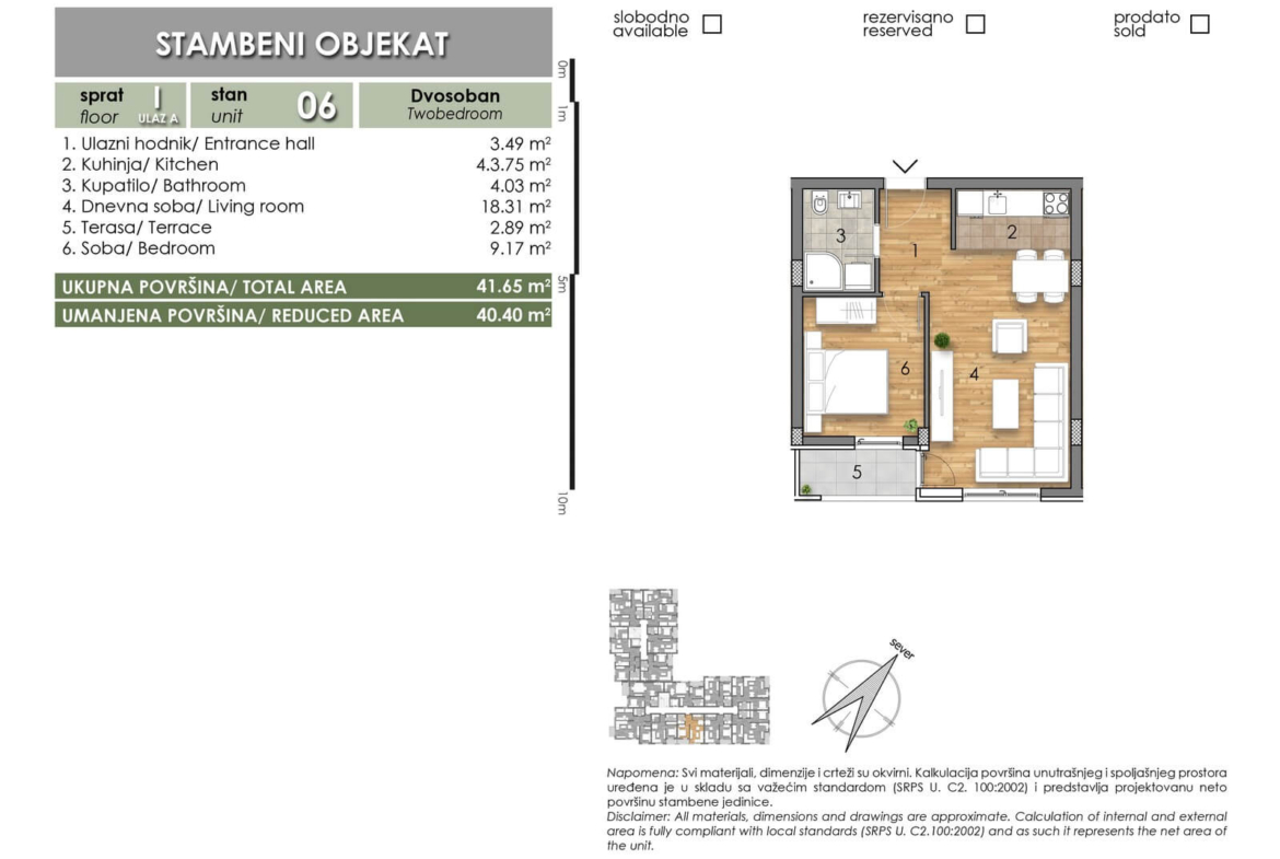 LAZE LAZAREVIĆA – Stan 6 – Dvosoban -Lamela A