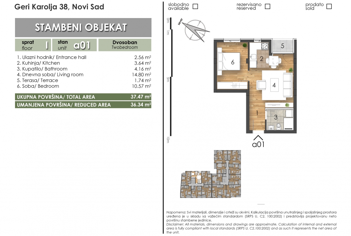 UGAO GERI KAROLJA I SUBOTIČKE – Stan 1 – Dvosoban – Lamela A