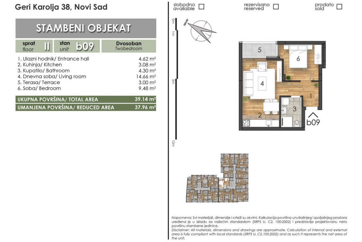 UGAO GERI KAROLJA I SUBOTIČKE – Stan 9 – Dvosoban – Lamela B