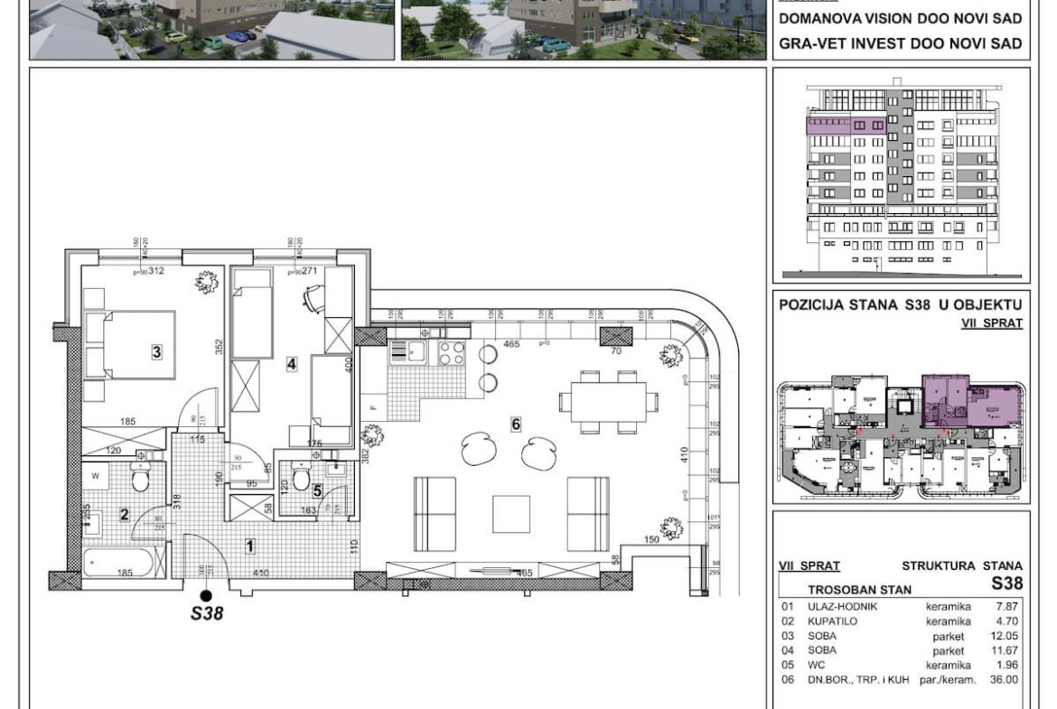 Ugao Koči Ivana i Bulevar Patrijarha Pavla – Stan 38 – Trosoban