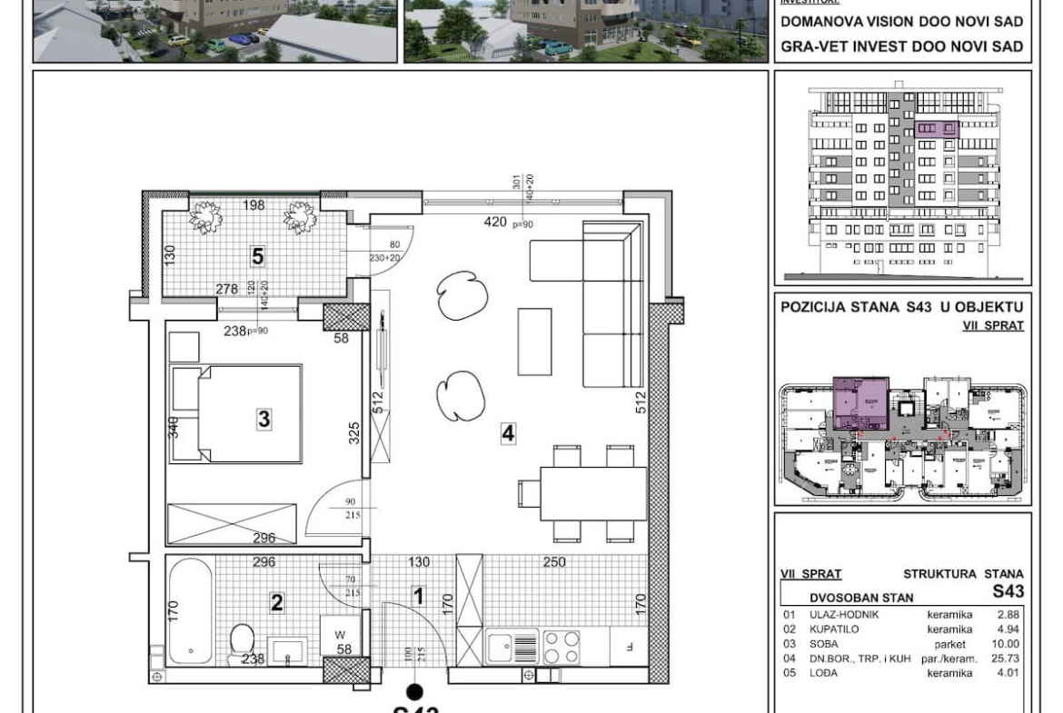 Ugao Koči Ivana i Bulevar Patrijarha Pavla – Stan 43 – Dvosoban